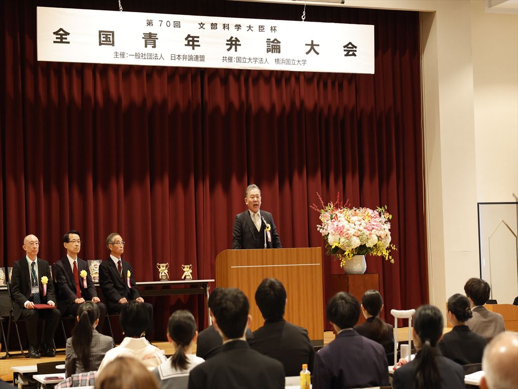 令和7年11月16日、神奈川県横浜市にて第70回文部科学大臣杯全国青年弁論大会が開催されました。